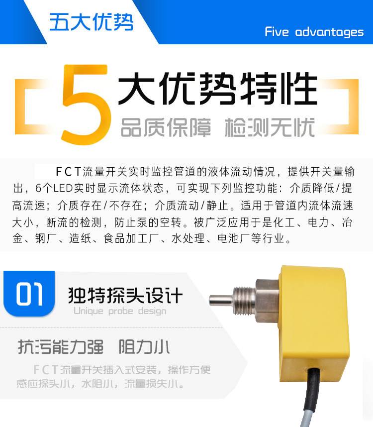 插入式水流感应开关 DN15流量流速开关传感器 4分6分DN20流动开关